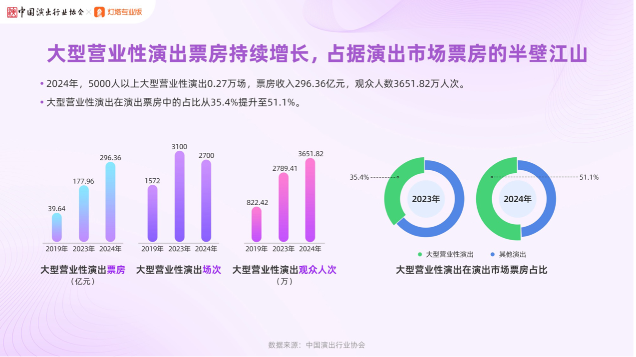 灯塔业余版经营总司理王舒总结揭示,2024年大型歇业性演出依然处于一个高速削减的睁开周期,提供侧趋于多元化、品质化睁开,破费侧更看重体验、功能以及生涯方式的泛起,全副市场去世气愿望短缺,破费发达,会朝着更高水平进阶睁开。