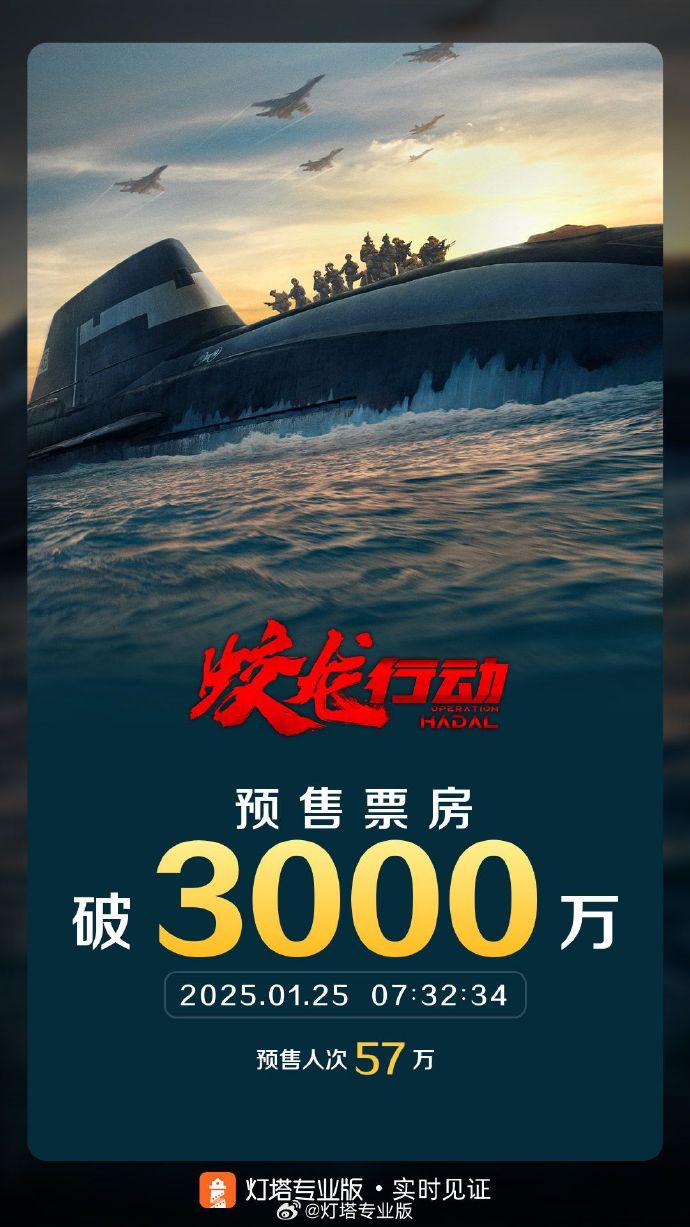 《蛟龙行动》预售票房破3000万。