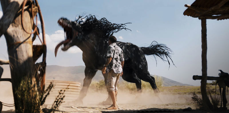 《毒液3》剧照。毒液与马匹以共生体形态奔流成为影片一大高光镜头。