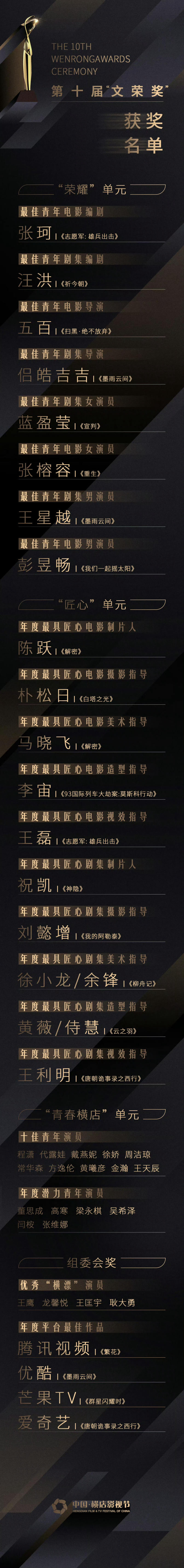 此外“文荣奖”还特意设立“年度群集平台最佳作品”以及“优异横漂演员”两个奖项。前者表彰了近些年来在群集视频平台播出的优异影视作品,后者针对于横店泛滥的公共演员设立,以谢谢下层影视使命者的贡献。
