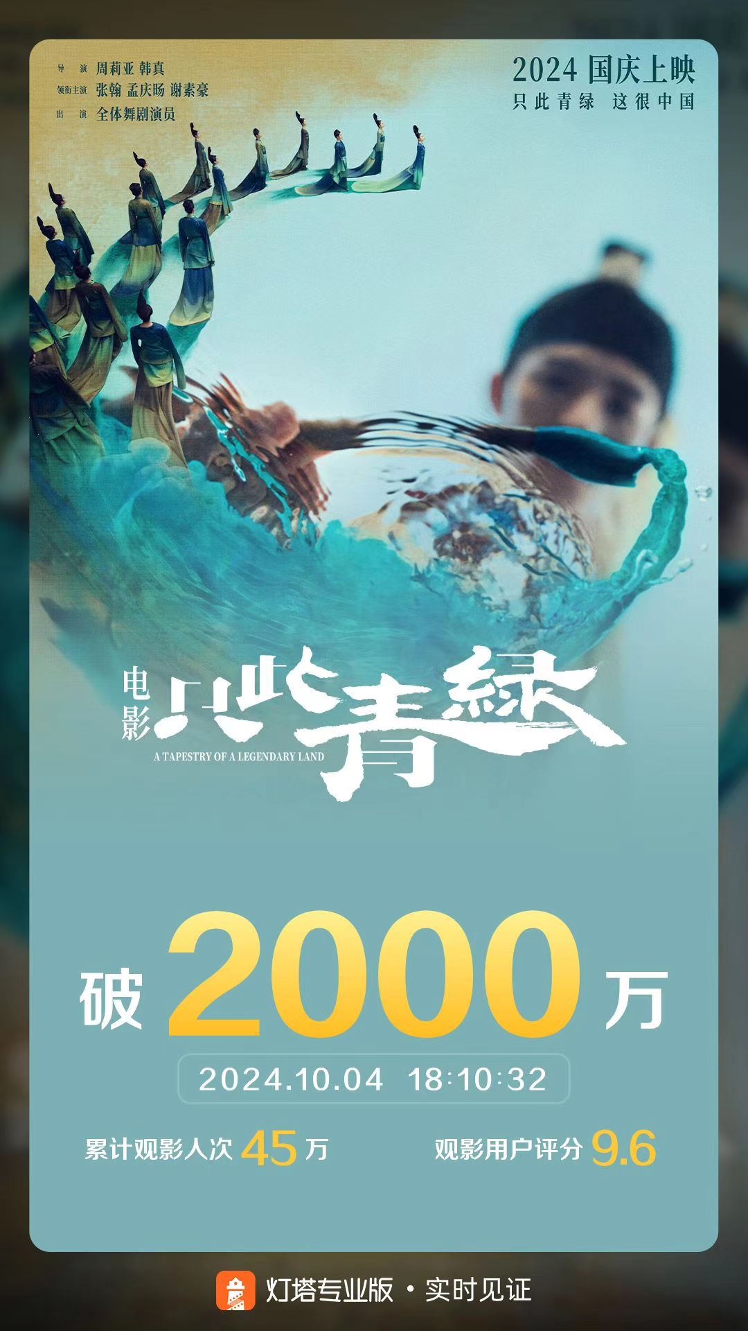 10月4日,片子《只此青绿》票房突破2000万。档新
