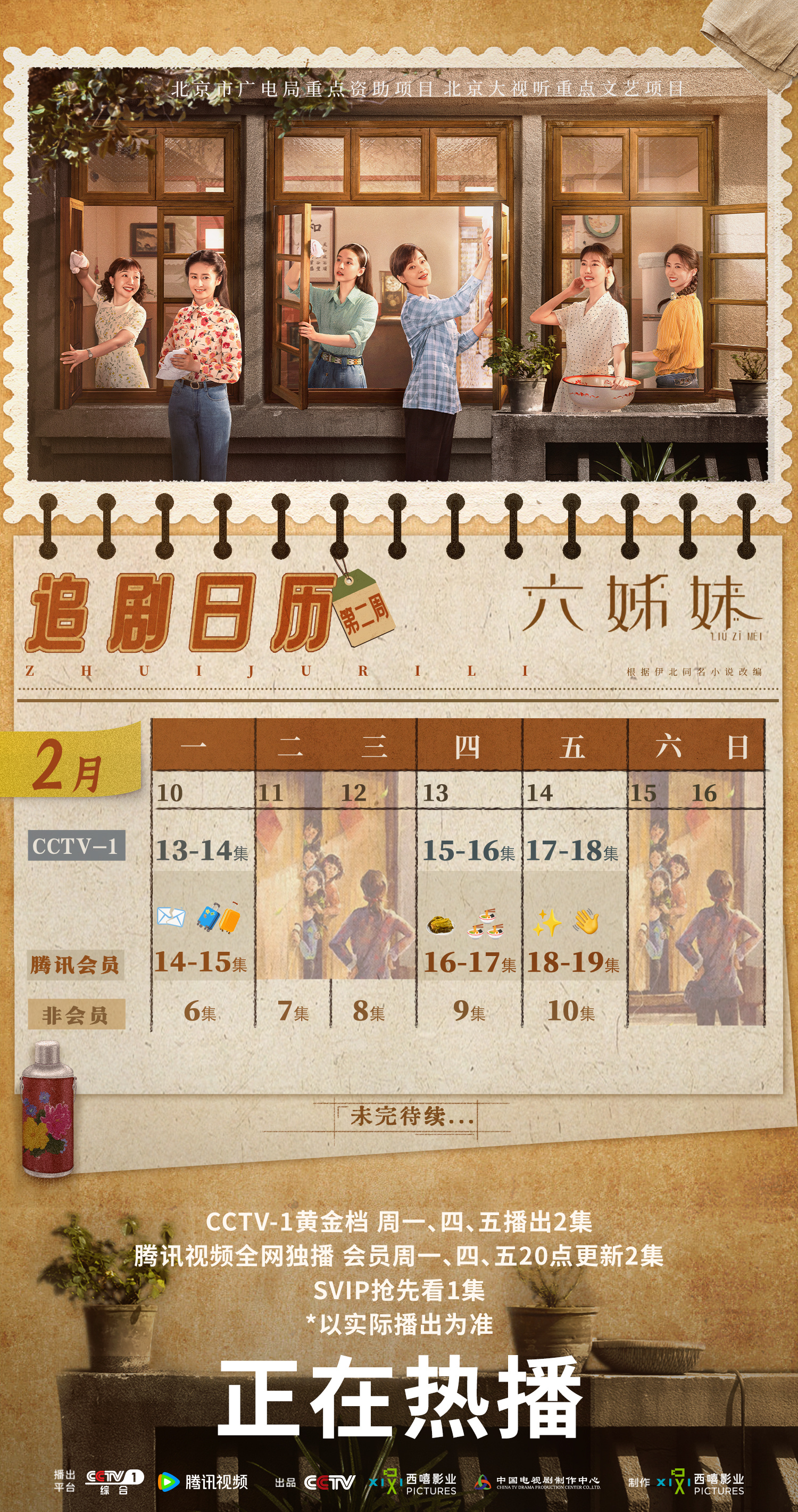 最新往事讯 2月10日,电视梅婷、剧姊剧日陆毅领衔主演的妹宣电视剧《六姊妹》宣告第二周追剧日历。该剧正在CCTV-1黄金档、告第腾讯视频同步热播。周追