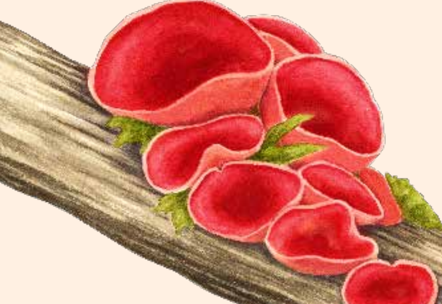绯红肉杯菌。《DK真菌:蘑菇眼前目今的惊人迷信》插图